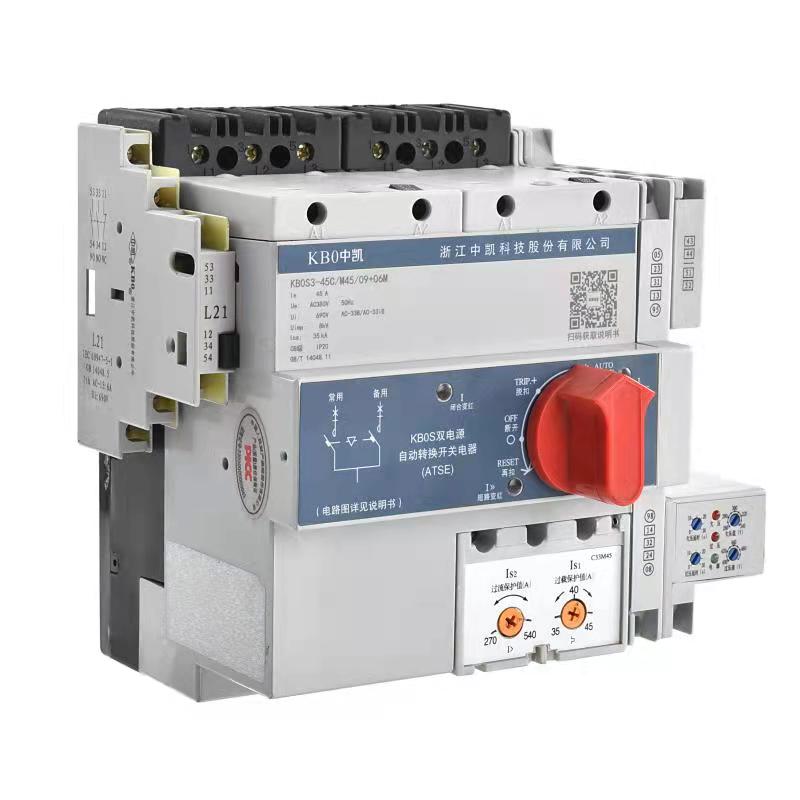 雙電源自動轉換開關電器KB0S3是以KB0基本型產品作為主開關,與雙電源控制器、機械聯鎖、電氣聯鎖等附件組成,構成了CB級和PC級兩種ATSE。
